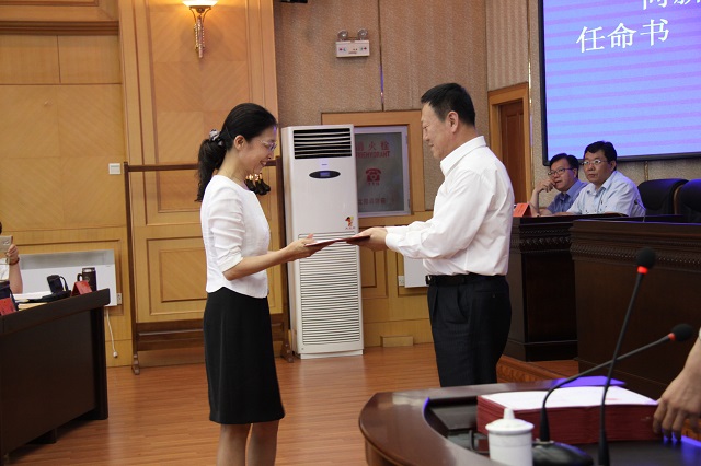 市委书记、市人大常委会主任赵长富向新任命副市长颁发任命书