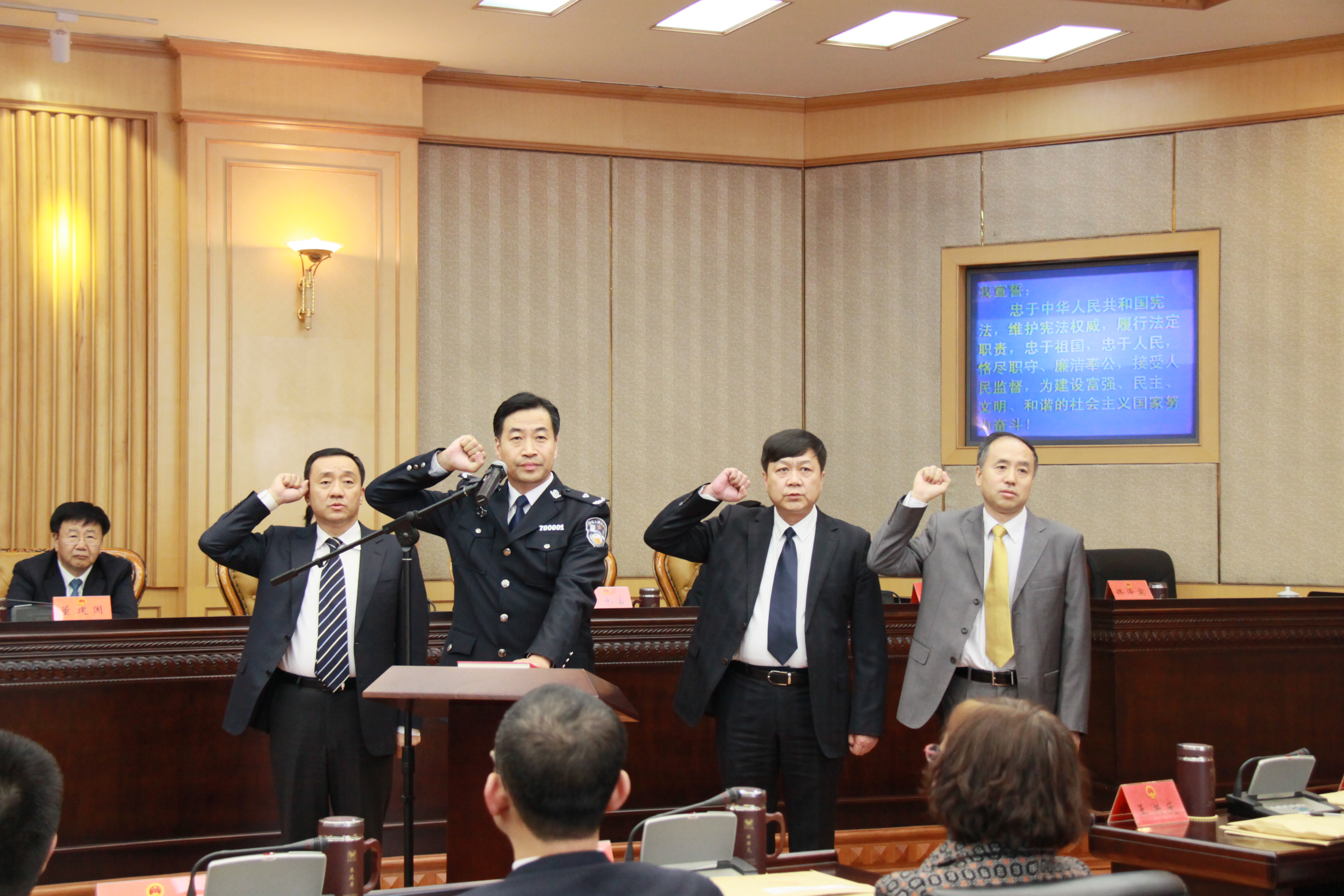 “我宣誓:忠于中华人民共和国宪法,维护宪法权威,履行法定职责,忠于祖国、忠于人民,恪尽职守、廉洁奉公,接受人民监督,为建设富强、民主、文明、和谐的社会主义国家努力奋斗!”3月17日,4位由市十五届第二十三次会议投票通过的国家工作人员向宪法庄严宣誓,坚定的誓词掷地有声,响彻整个会议现场。这是市人大组织新当选的国家工作人员公开向宪法宣誓。