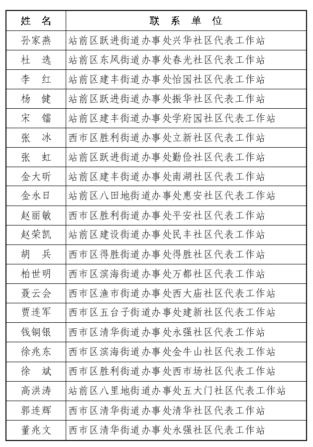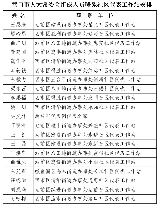 常委会组成人员联系社区代表工作站安排